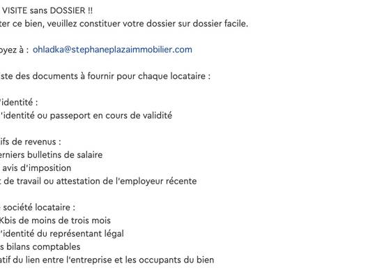 AUCUNE VISITE sans DOSSIER !! Pour visiter ce bien, veuillez constituer votre dossier sur dossier facile. Puis envoyez à : Voici la liste des documents à fournir pour chaque locataire : Pièces d'iden...