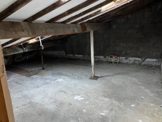 FACE A LA GARE - Grand garage à usage de local de stockage ou possibilité de stationner un camping-car. Il possède une grande porte métallique coulissante. Surface d'environ 38 m² + mezzanine d'envir...