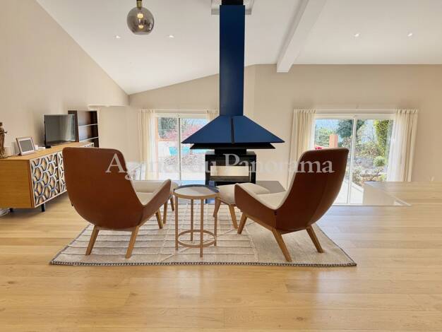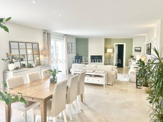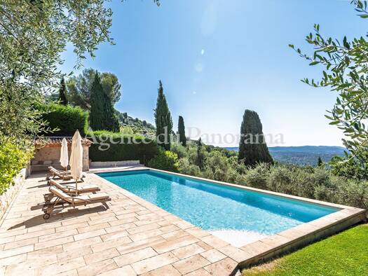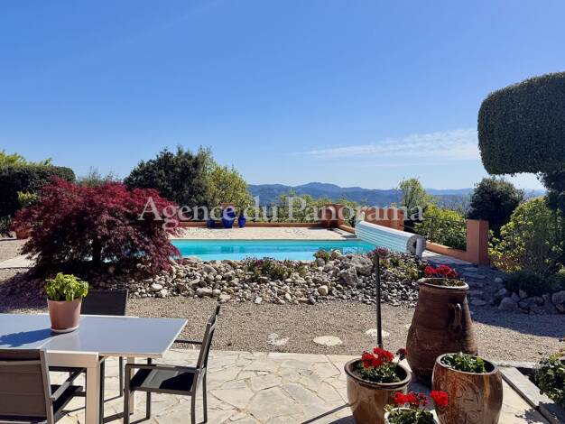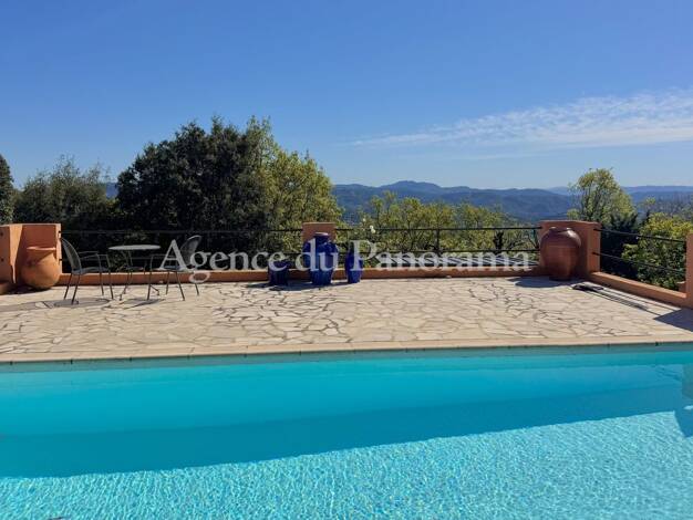 Belle villa d’environ 230 m², en parfait état et ne nécessitant aucun travaux, offrant une vue imprenable sur la mer, le lac, le village et les collines, idéalement située à la lisière du cœur du vil...