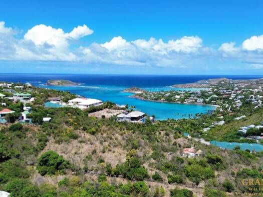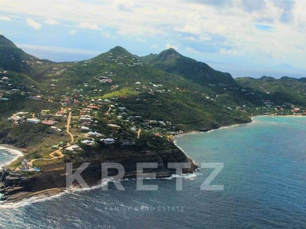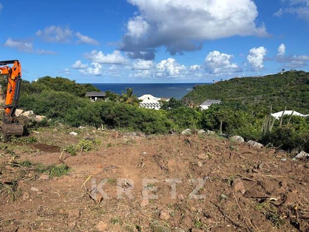 Saint-Barthélemy – Pointe Milou. Terrain d'environ 1 014 m² avec vue panoramique sur l'océan. Permis de construire et projet architectural approuvés pour une villa contemporaine de 159 m² comprenant ...