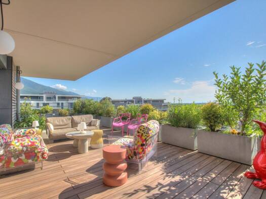 UNQIUE SUR LE MARCHÉ Niché en plein centre de Thoiry, exceptionnel appartement en attique de type 4 d'une surface habitable de 145 m² avec une terrasse panoramique de 185 m² offrant une vue imprenabl...