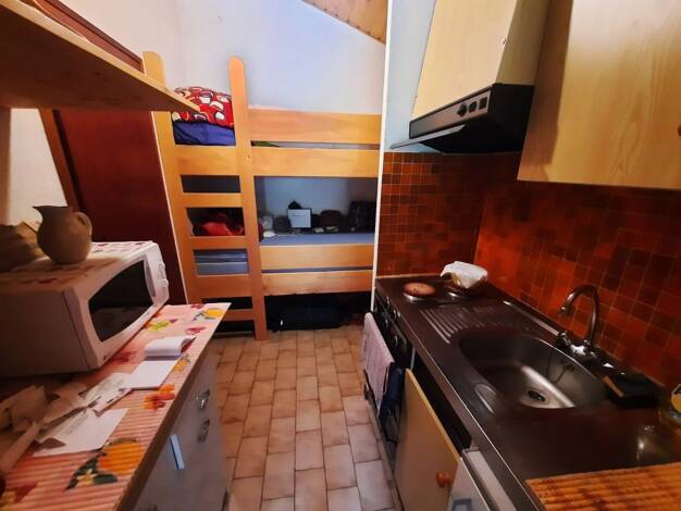 Exclusif BELLEVAUX Hirmentaz au pied des pistes de la station familiale studio 22 m² au 3ème et dernier étage avec ascenseur un coin nuit avec lit superposé kitchenette séjour terrasse ouest de 5 m² ...