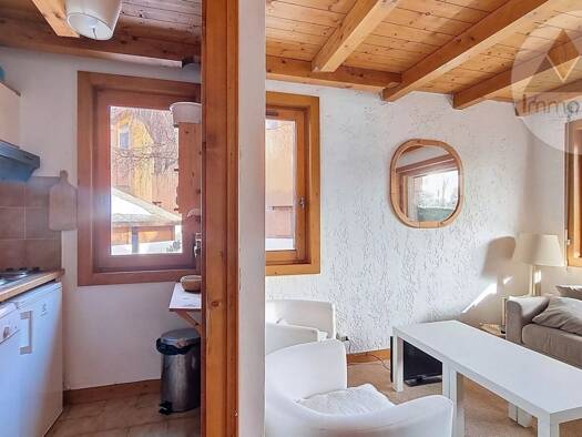 Cet appartement T2 d'environ 28 m², situé en rez-de-jardin au sein d’une copropriété des Houches, bénéficie d’une exposition Est. Il se compose d’une entrée, d’une petite chambre (lit 2 places), d’un...