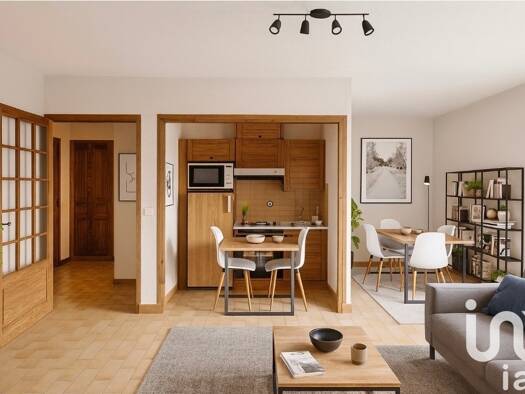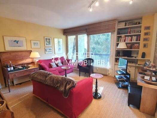 Grand deux pièces de 44 m², exposé sud-est. La pièce de vie comprend une petite cuisine ouverte , un coin repas et un espace séjour avec cheminée, la pièce s'ouvre sur une petite terrasse avec vue su...