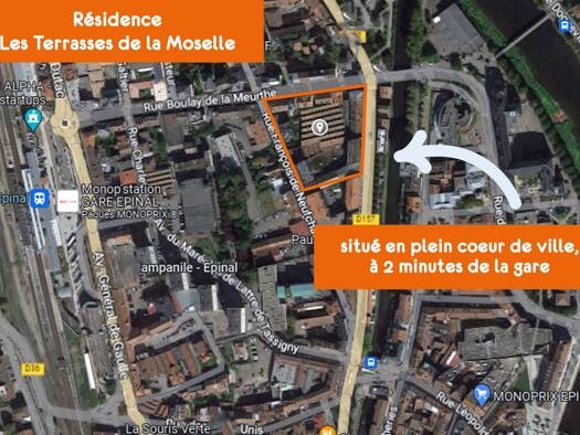 La résidence des Terrasses de la Moselle dont l’entrée véhicule se situe rue François de Neufchâteau, est idéalement placée à l’intérieur du nouvel îlot et donc au calme en plein centre-ville à proxi...