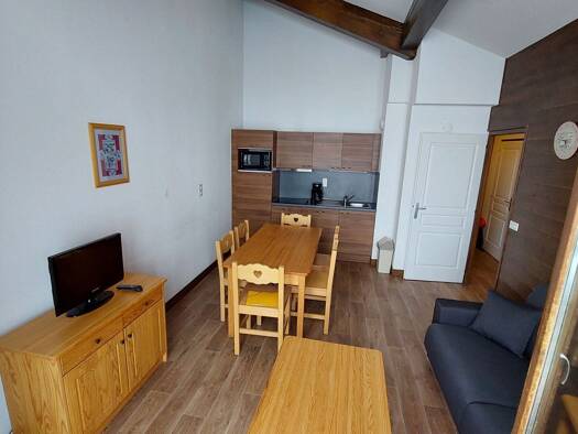LES SAISIES - Bisanne 1500, cet appartement avec deux espaces nuit fermés plus une mezzanine vous offre un cadre de vie agréable et paisible en montagne avec 6 couchages. À deux pas du télécabine Il ...