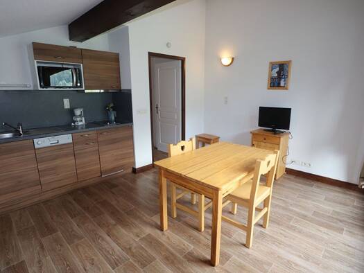 Dans une résidence avec piscine, dans le village d'Hauteluce, appartement avec entrée, pièce à vivre avec coin cuisine équipée, 2 chambres, S.D.B., W.C. indépendant. Balcon sud. Une vue splendide ouv...