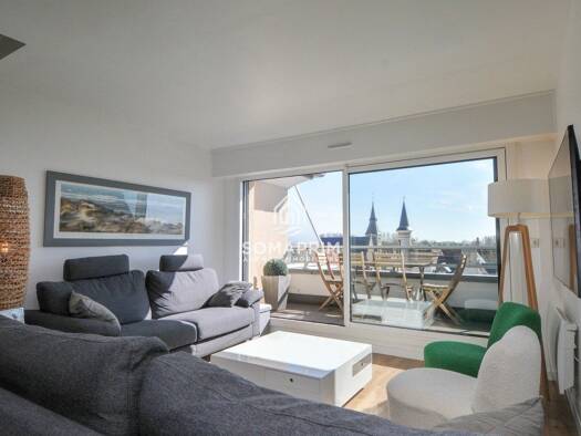 Situation : Dans le coeur de la ville à deux pas du Marché Couvert et de la Plage. Description : Appartement au 5ème et dernier étage de la résidence d'une surface carrez de 81,19 m² (soit 89,29 m² h...