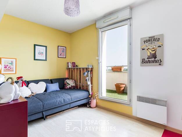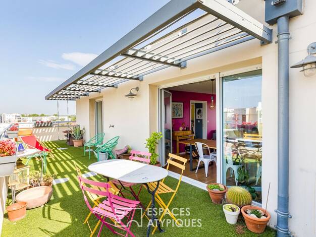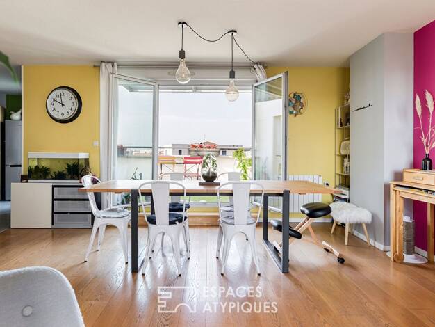 Appartement et son toit terrasse à Toulouse Secteur Borderouge, situé au 4ème et dernier étage d'un immeuble avec ascenseur, cet appartement T4 de 102 m² carrez offre une qualité de vie rare, prolong...