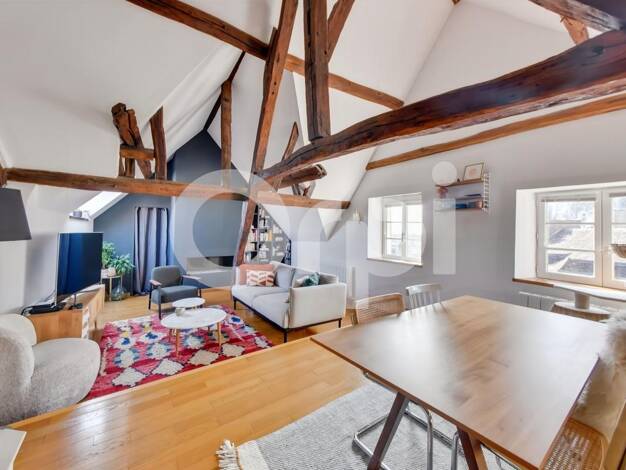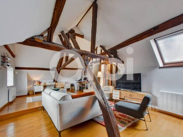 Situé au coeur de la ville, ce duplex de caractère de plus de 90 m² offre de beaux volumes, du cachet et une configuration évolutive. Dès l'entrée, le charme opère : parquet ancien, poutres apparente...