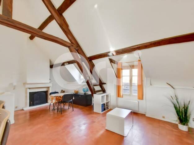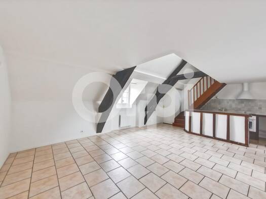En Centre-Ville de Senlis, un appartement en duplex, au 2ème étage composé d'un séjour avec cuisine ouverte aménagée, une petite chambre, une salle de bains avec toilettes. A l'étage en mezzanine ave...