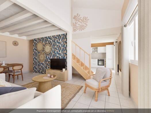 Appartement T3 en duplex – 66 m² – Terrasse & parking – Audenge Salon lumineux, cuisine américaine équipée. Deux chambres avec placards, prestations modernes, local à vélo, portail sécurisé. L'appart...