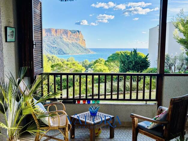 Superbe type 2 avec terrasse offrant une magnifique vue mer et Cap Canaille Son environnement se situe dans résidence haut de gamme avec piscine, tennis, jardins et parking Nous sommes en 10 mn à pie...
