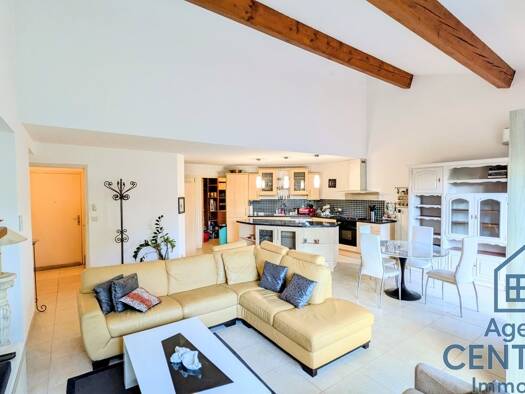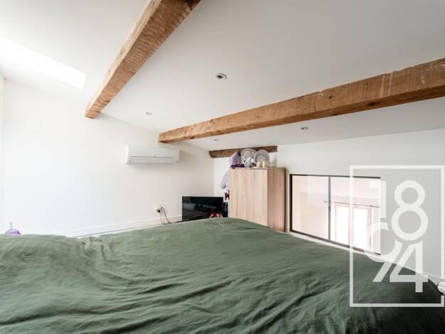 Bien exceptionnel ! En exclusivité, Orpi Mougel Immobilier vous propose à la vente ce sublime appartement 2 pièces (+ mezzanine) de 50 m2 Loi Carrez (53 m2 au sol) en dernier étage avec une immense t...