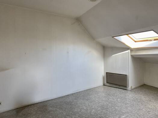 Reims - Secteur avenue de Laon - Pouillon. A vendre, dans un immeuble en coprorpiété, au dernier étage sans ascenseur, un appartement de type 2 d'environ 27m2 (env. 44 m2 au sol) composé d'une pièce ...