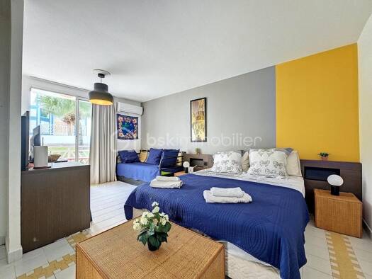 Joli duplex entièrement rénové, équipé, meublé et décoré. Il est situé dans une résidence fermée avec 3 piscines, un jardin tropical et un accès direct à la marina. Caractéristiques principales: Séjo...