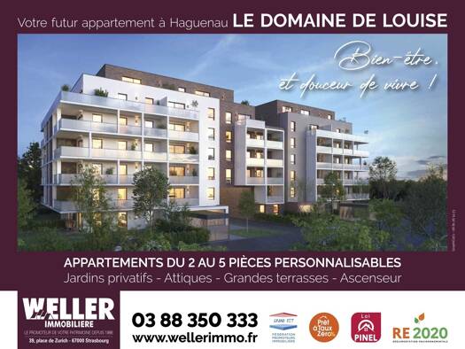Enfin de belles terrasses! À Haguenau, la 2ème ville du département du Bas-Rhin et la 4ème ville d’Alsace avec plus de 60.000 habitants, découvrez notre nouveau projet : Le Domaine de Louise. Ce prog...