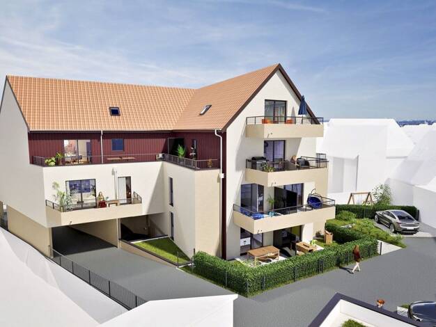 Villa Haguenovia, une résidence contemporaine nichée dans un écrin arboré à Haguenau. Appartements lumineux avec extérieur, prestations soignées et confort moderne au cœur d’un environnement privilég...