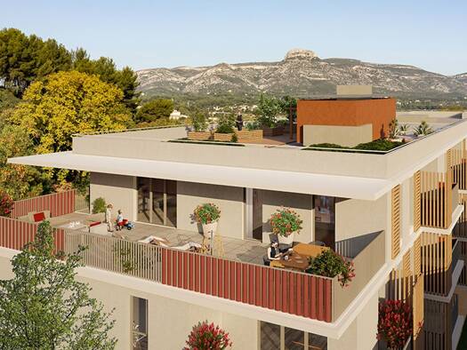 UNE PARENTHÈSE ACTUELLE AU COEUR DE LA VIE AUBAGNAISE TERRA ALBA dévoile un bâtiment de 3 étages disposé en L, composé de grands volumes épurés d’inspiration méditerranéenne. Les façades sont traitée...