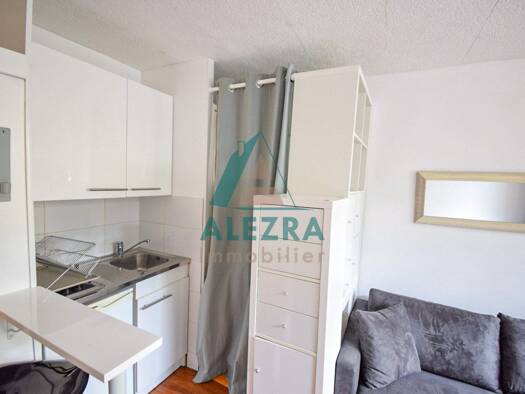 Studio lumineux d'une superficie de 13,80 m2 situé au 1er étage dans une résidence de standing. Pièce principale donnant sur un balcon, coin kitchenette, douche, w.c (sanibroyeur). Autre w.c. sur le ...