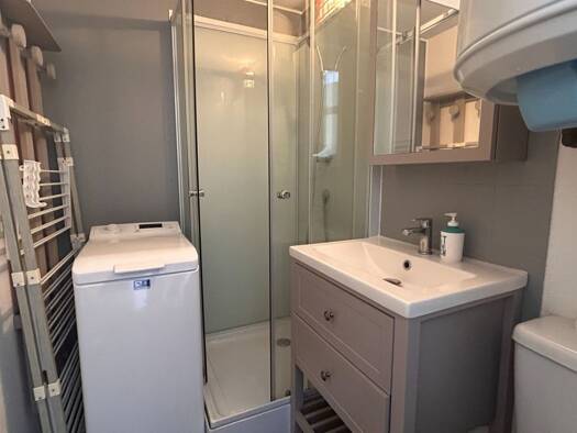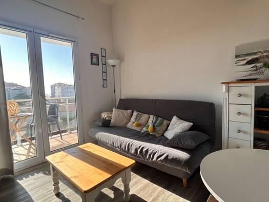 En bordure de plage, très joli studio réaménagé avec un coin nuit séparé en très bon état. Vous pourrez également profiter de la vue depuis son agréable terrasse. Pour stationner votre véhicule, vous...