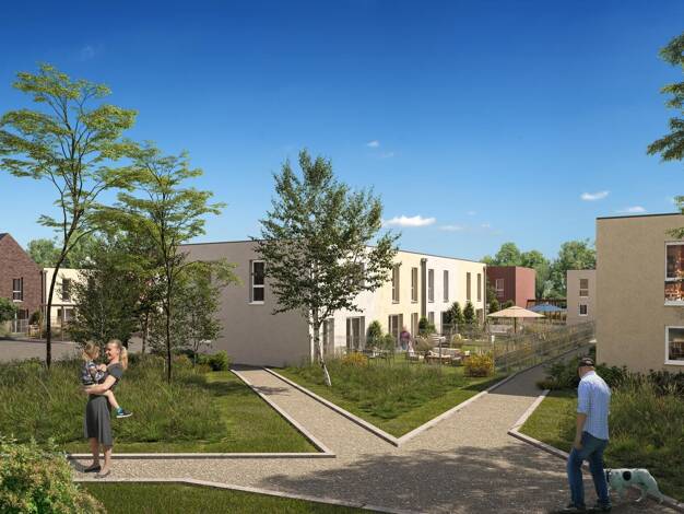 À Armentières, découvrez une nouvelle résidence Kaufman & Broad. Sur les rives de la Lys et face aux Prés du Hem, elle offre une architecture de caractère inspirée des quais hollandais. Alternant toi...