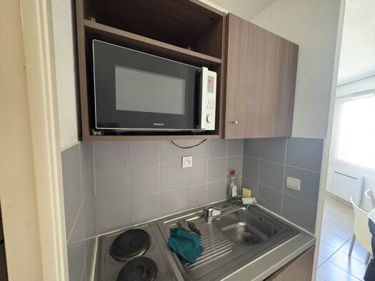 Situé en étage élevé d'une résidence récente (2006), studio d'une superficie de 23.43 m² bénéficiant d'une vue dégagée. Il se compose d'une entrée, kitchenette, pièce à vivre, salle d'eau avec wc.