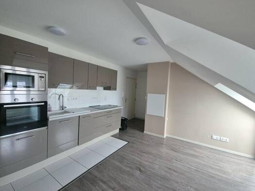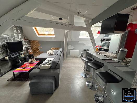 NANTEUIL LE HAUDOUIN - CENTRE VILLE - L'équipe HABITAT IMMOBILIER vous présente en EXCLUSIVITE ce joli appartement atypique situé au dernier étage, proposant : Entrée, séjour avec cuisine US équipée,...