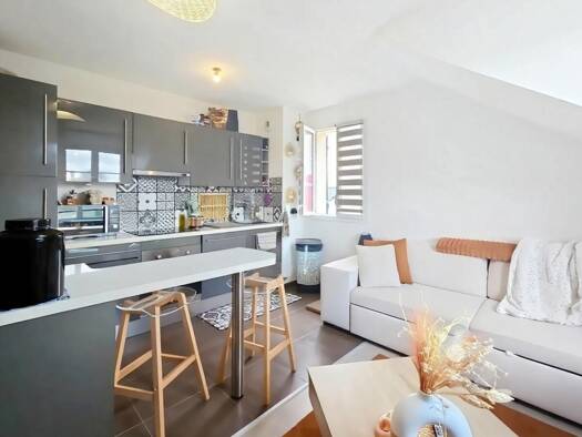 Charmant F2 au 1er étage d'une copropriété de 2021 comprenant: Une entrée avec rangements, une salle de bains avec WC, une cuisine aménagée et équipée ouverte sur le salon séjour et une chambre. Les ...