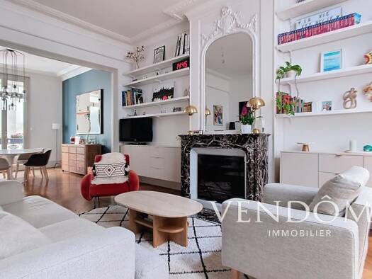 Dans un très bel immeuble 1930. Appartement de caractère de 96.5 m² offrant un superbe séjour avec cuisine équipée de 50 m². Deux chambres et un bureau ainsi qu'une grande salle de bains (baignoire e...