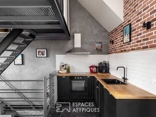 Ce loft inversé de 128,85m² (loi Carrez), réparti sur trois niveaux, offre un emplacement privilégié à Wattignies, dans le quartier Centre. Issu de la réhabilitation de l'ancienne brasserie « l'Amite...