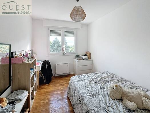 Dans copropriété de standing, proximité bus et Halles de l'Ouest, dans parc avec piscine et tennis, bel appartement de 110m² en dernier étage entièrement rénové à vendre. Il se compose d'un hall d'en...