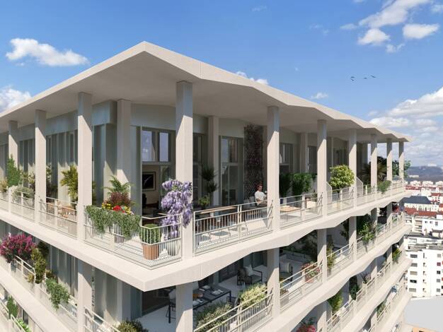 Isola Verde allie modernité, confort et respect de l'environnement au cœur d'un quartier dynamique parfaitement desservi par les transports en commun : Grange-Rouge / Mermoz L'architecture de la rési...