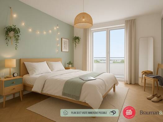 Brauman&K vous présente: Beau 3 pièces de 64m² dans une future belle résidence de standing proche de toutes commodités. Se compose d'une entrée, 2 chambres, une salle de bains, un WC indépendant, un ...