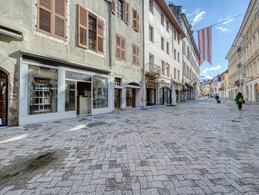Chambéry Hyper centre ! Dans rue commerciale, fonds de commerce d'un très beau magasin de 103 m² sur 2 niveaux principaux avec très beau linéaire de vitrines pare-balle. Cave de 7 m². Le magasin a fa...