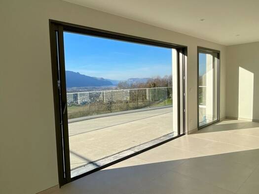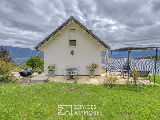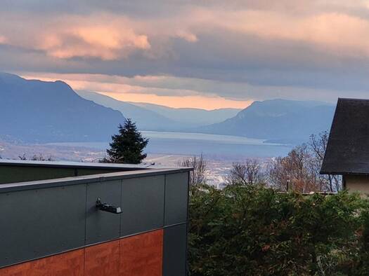 MONTAGNOLE - Superbe vue lac, sans vis à vis, pour cette maison d'architecte signée Rieussec, construite en 2002 en ossature bois, au coeur de Montagnole, dans un cadre privilégié. La propriété s'éte...