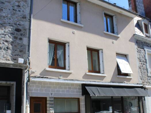 Immeuble avec local commercial et 3 apartements, situé en centre ville de RIOM-ES-MONTAGNES. Il est composé au rez-de chaussée d'un local commercial, bureau, wc, débarras et un garage. Première parti...