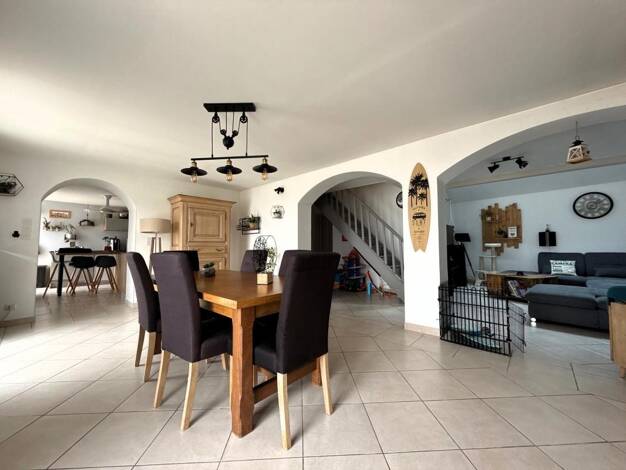 Une maison d'habitation sur 2 niveaux et demi, avec possibilité de détacher un appartement indépendant. Au rez-de-chaussée surélevé : un séjour lumineux avec accès au balcon, une cuisine aménagée, 3 ...