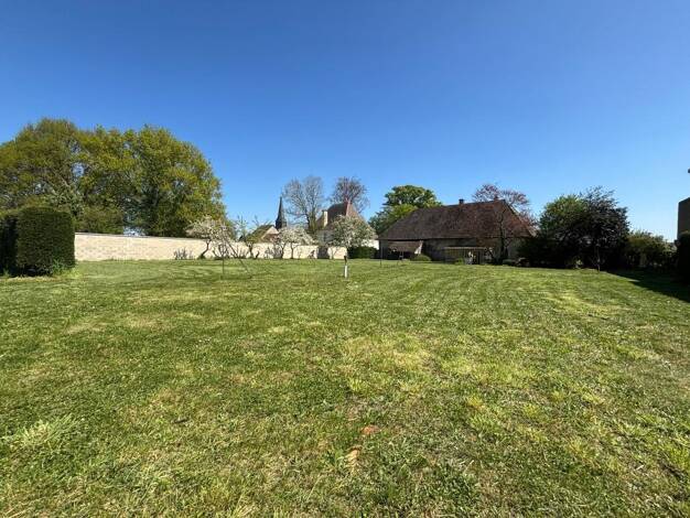 Sur beau terrain plat de près de 2.800m2 constructible, vaste grange de plus de 170m2 au sol avec magnifique charpente