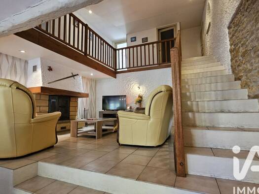 iad France - Romain Fessard vous propose: Maison de village d'environ 190 m² habitables, mitoyenne des deux côtés avec murs épais d'environ un mètre, située sur un terrain clos d'environ 650 m². Cett...