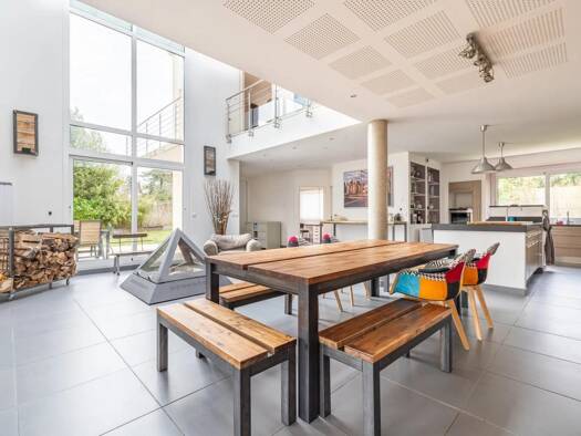Découvrez cette maison d'architecte exceptionnelle de 10 pièces, offrant une surface habitable de 270 m², nichée à Quincy-sous-Sénart. Dès votre entrée, soyez ébloui par le vaste séjour en double hau...