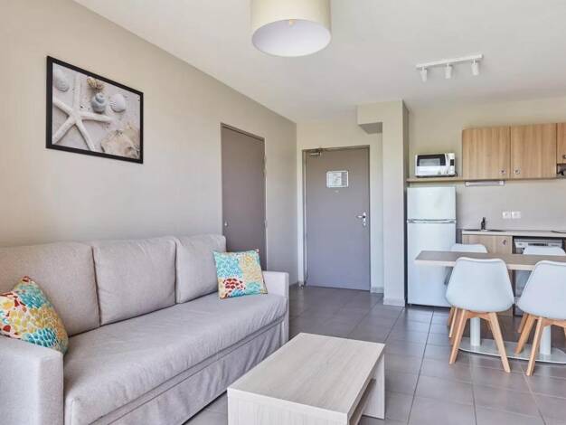 Appartement T3 d'environ 55 m² situé au 1er étage sur 2 d'une résidence récente, sécurisée, avec ascenseur et piscine. Il se compose d'un salon séjour climatisé avec cuisine équipée, offrant un espac...
