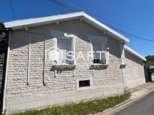 Au coeur du village de St Fraigne, maison de plain pied de 78m2 à remettre au gout du jour. La maison se compose d'une entrée donnant sur la pièce principale cuisine, salon salle à manger et un celli...