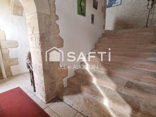 Charmante maison en pierre située dans un cadre bucolique et emplacement paisible au cœur d'un village typique Charentais Elle vous offre une entrée ouverte sur cuisine avec coin repas, un salon, cha...