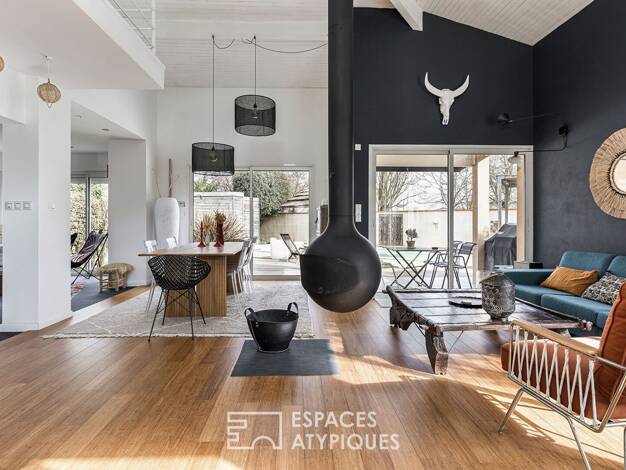 Villa moderniste avec piscine et jardin paysagé Nichée au coeur de Roques et de ses commerces, cette maison d'architecte d'environ 175m² s'érige sur une parcelle arborée de 900 m², offrant un cadre d...