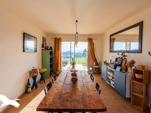Vue exceptionnelle sur la chaîne Pyrénéenne. Maison de plus de 150 m² qui se compose d'une belle pièce de vie lumineuse orientée Sud, trois chambres dont une suite parentale et une mezzanine. Edifiée...