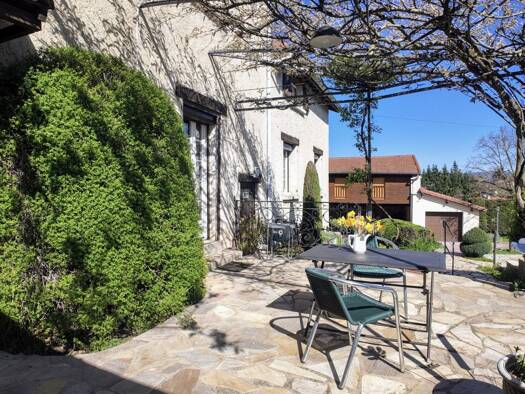 A seulement 1 heure de Lyon, 15 minutes de Saint-Étienne et aux portes des Gorges de la Loire, cette élégante demeure en pierre développe un cadre de vie rare, entre nature préservée et confort conte...