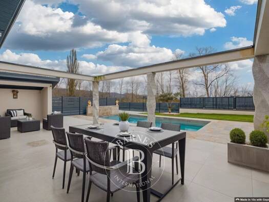Nichée sur les hauteurs de Nivolas-Vermelle, cette superbe villa d’architecte séduit par son style contemporain, ses prestations haut-de-gamme et sa vue panoramique sur l’ensemble de la propriété. El...