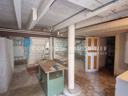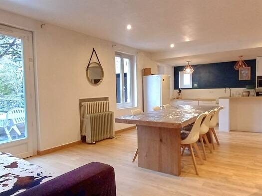 Maison de village mitoyenne (volets rouges) en pierres, avec cave et terrain attenant côté rivière. Travaux de rénovation importants à prévoir (charpente en bon état). Au rez de chaussée se trouve la...
