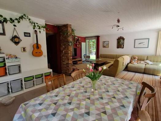 Cette maison est parfaite pour les familles nombreuses ou celles à la recherche d'un cadre de vie paisible et fonctionnel, combinant espaces de vie confortables, jardin avec piscine et dépendances pr...